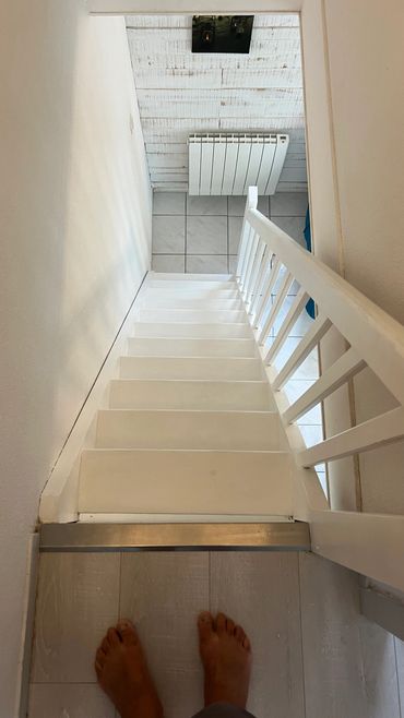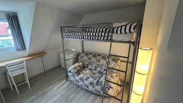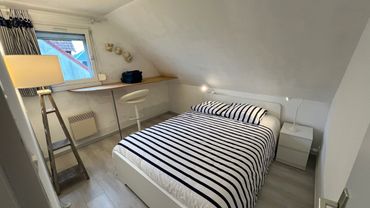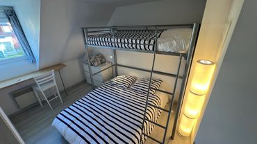 à l'étage, 2 chambres. La première avec un lit 2 personnes. La deuxième avec un lit mezzanine 1 personne et une banquette BZ 2 personnes.